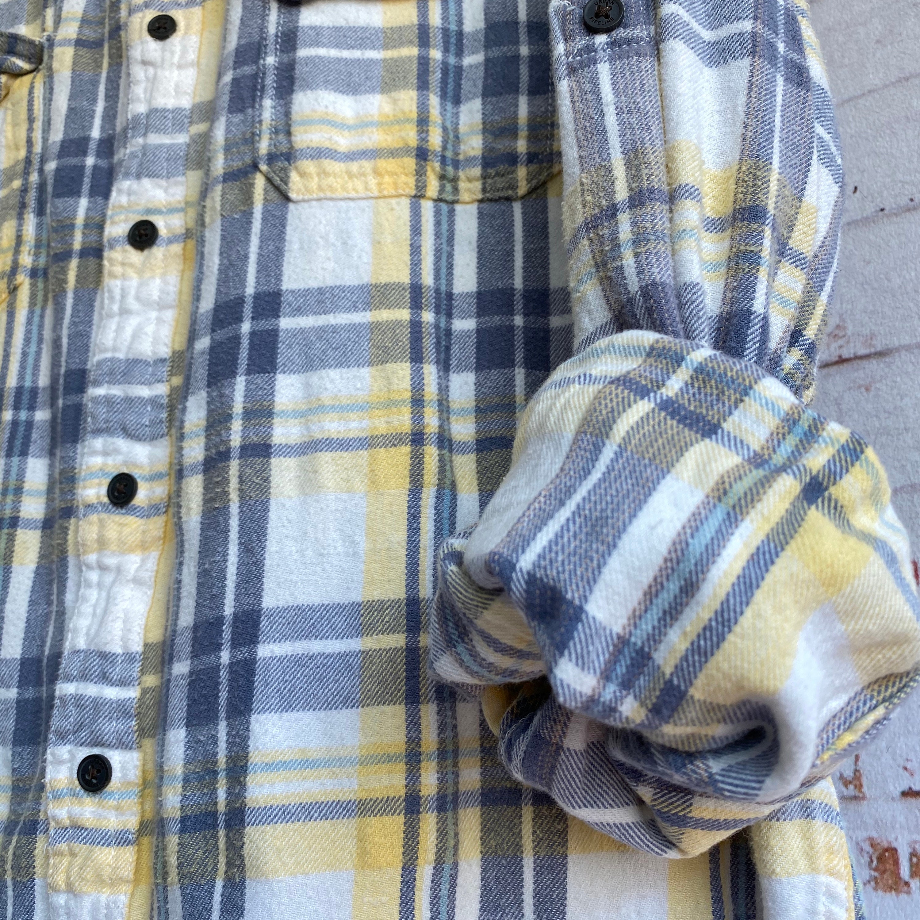 Price and other details may vary based on product size and color. Black Red Grey White Flannel Black Red Born Scum button down button sleeve cuff button chest pockets hidden collar buttons Black Red Born Scum Logos Classic center pleat for added movement and comfort 100 Poly blend Machine wash cold with like colors. Vintage Purple and Yellow Flannel Jacket Size Small.